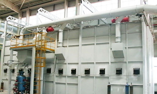 噴砂房主要用于中、大型結構比較復雜的工件表面的清砂、去除氧化皮等的處理。