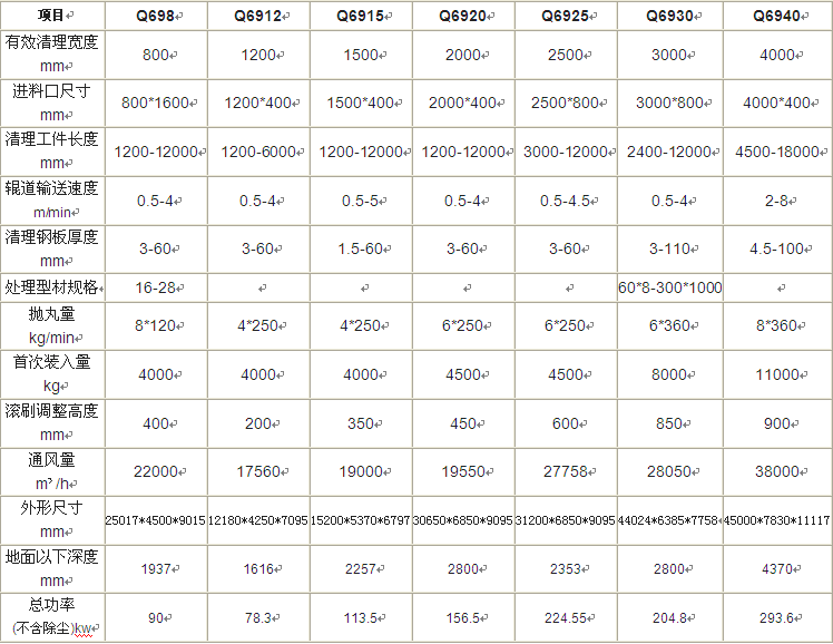 二、輥道通過式拋丸機參數(shù)